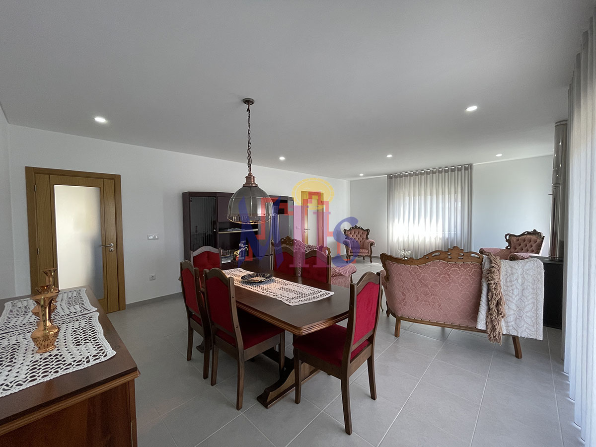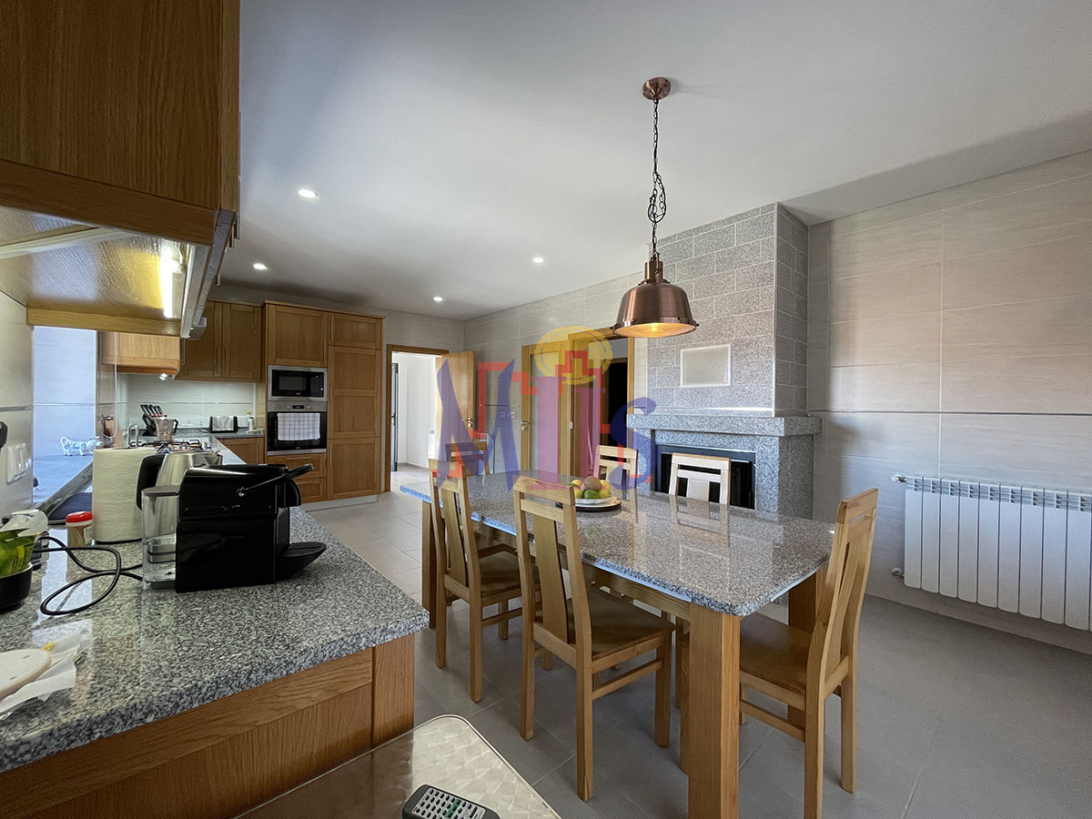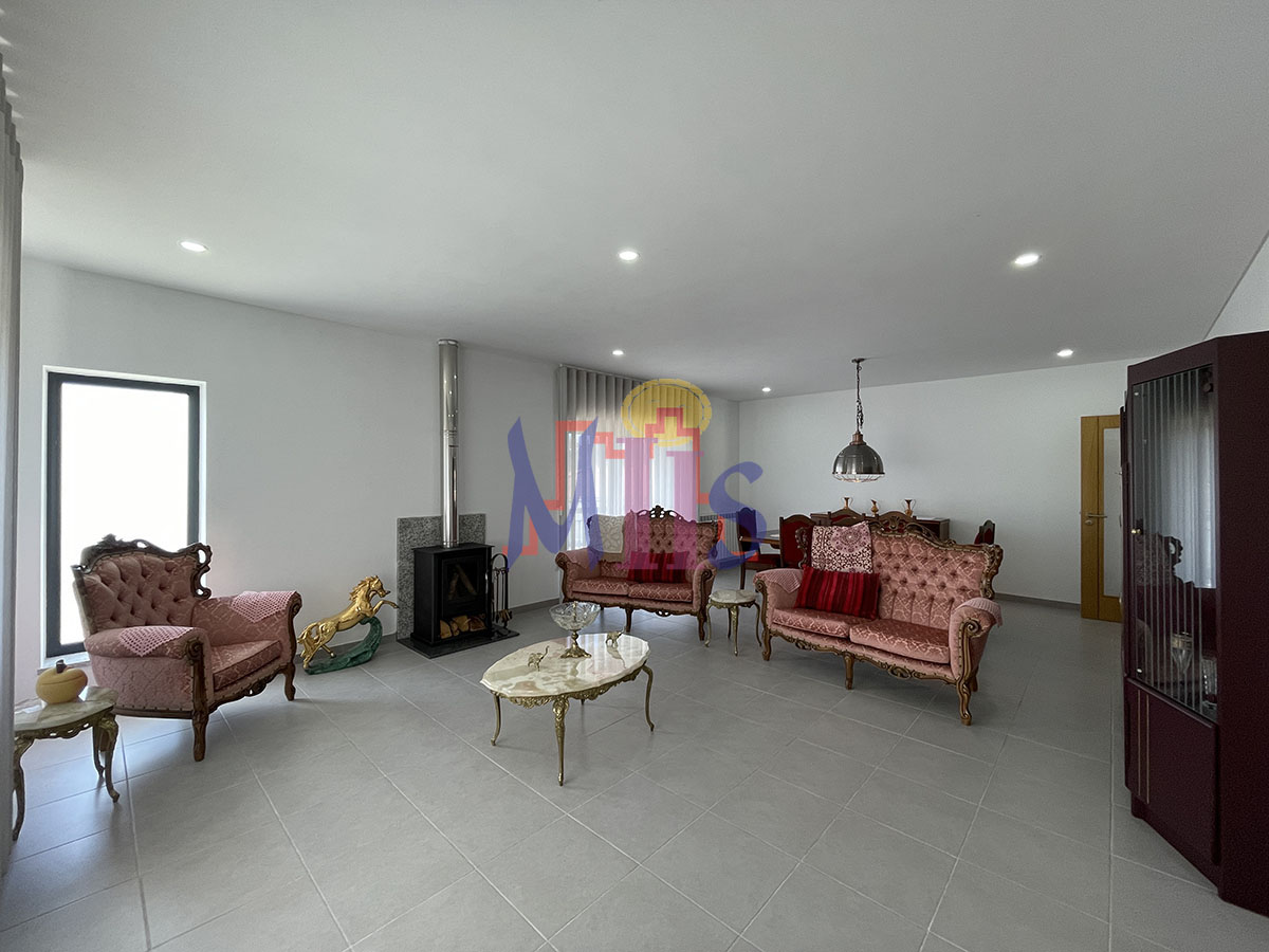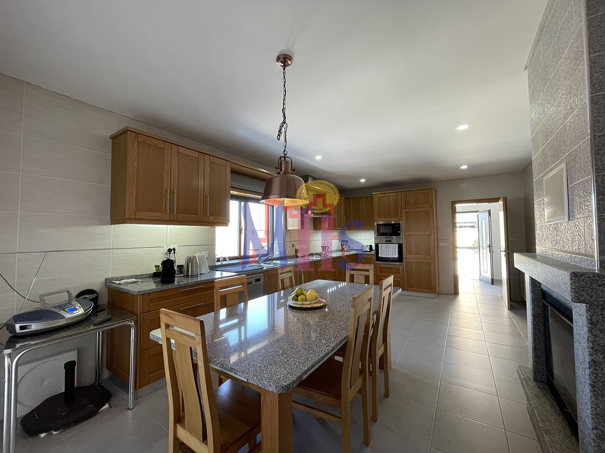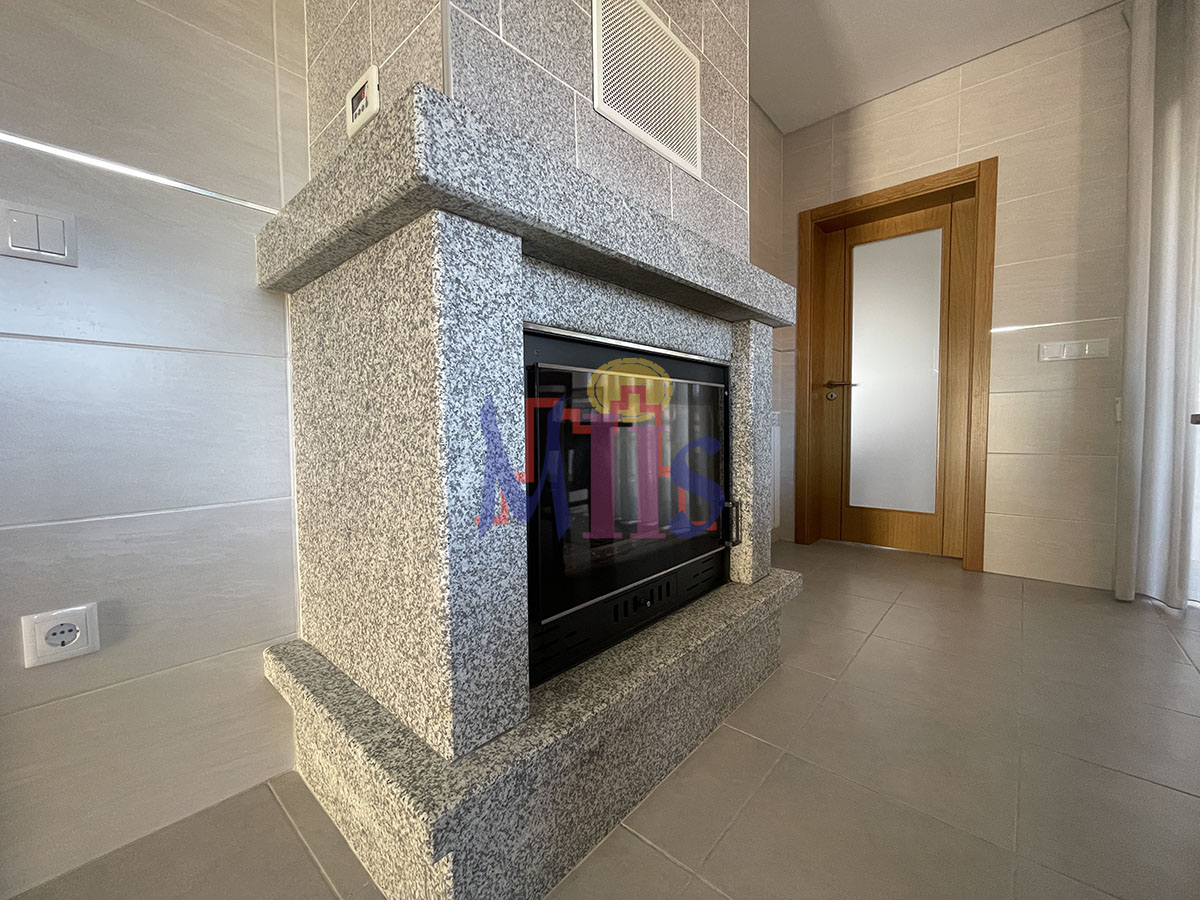 Caixilharia em alumínio com vidro duplo, aquecimento central lenha com recuperador de calor na cozinha, painéis solares, pré instalação para painéis fotovoltaicos e para aquecimento central a gasóleo.