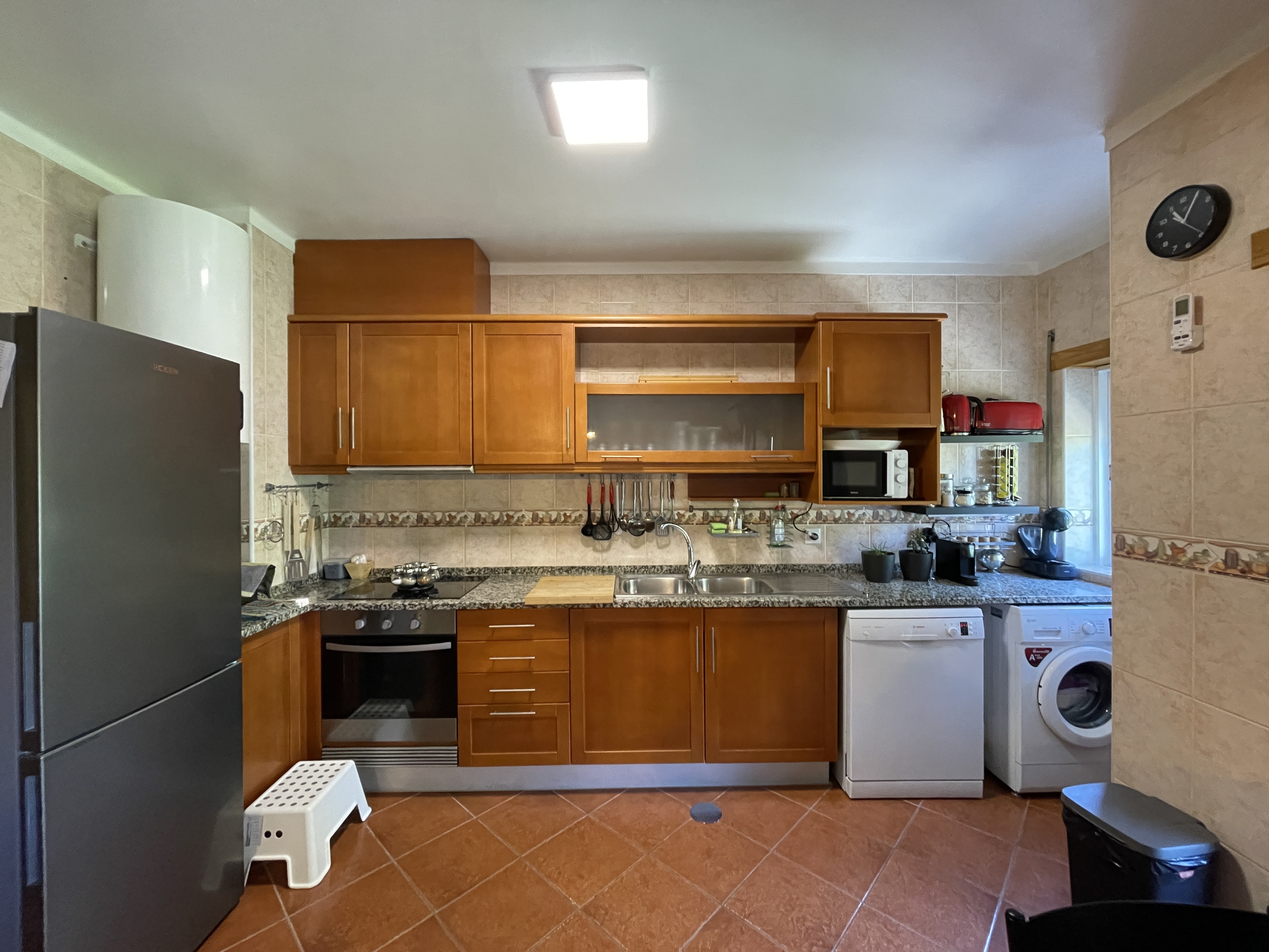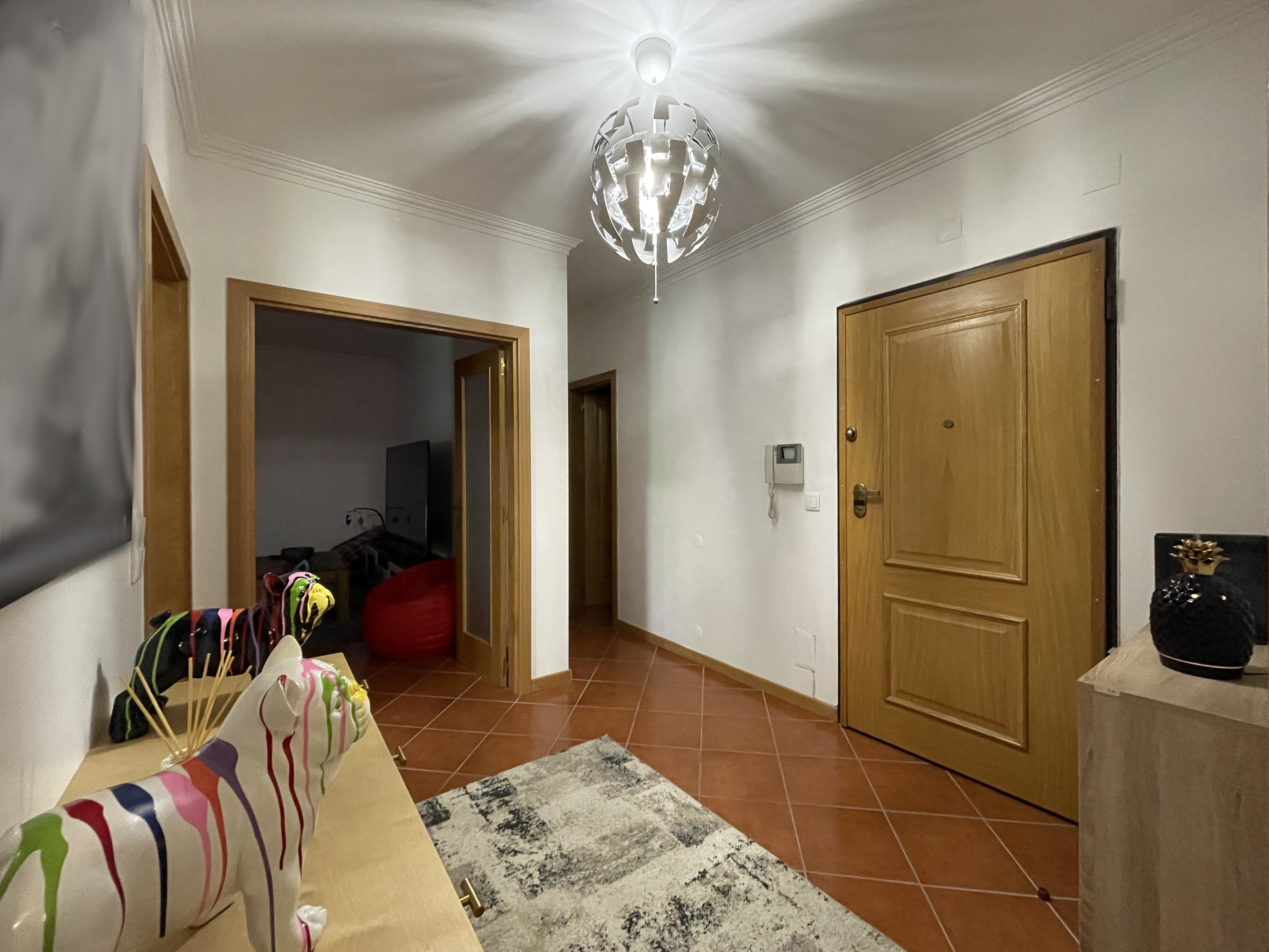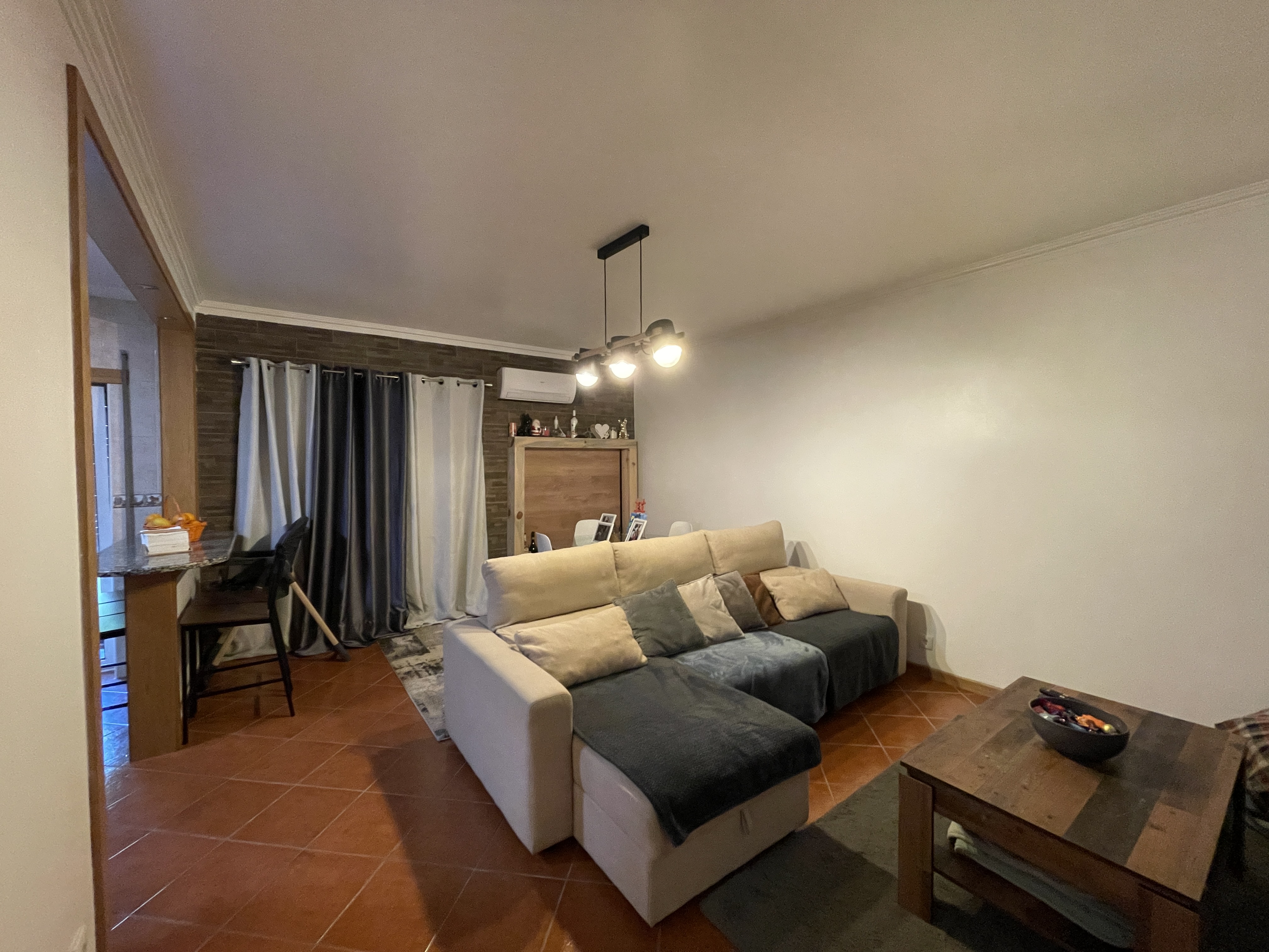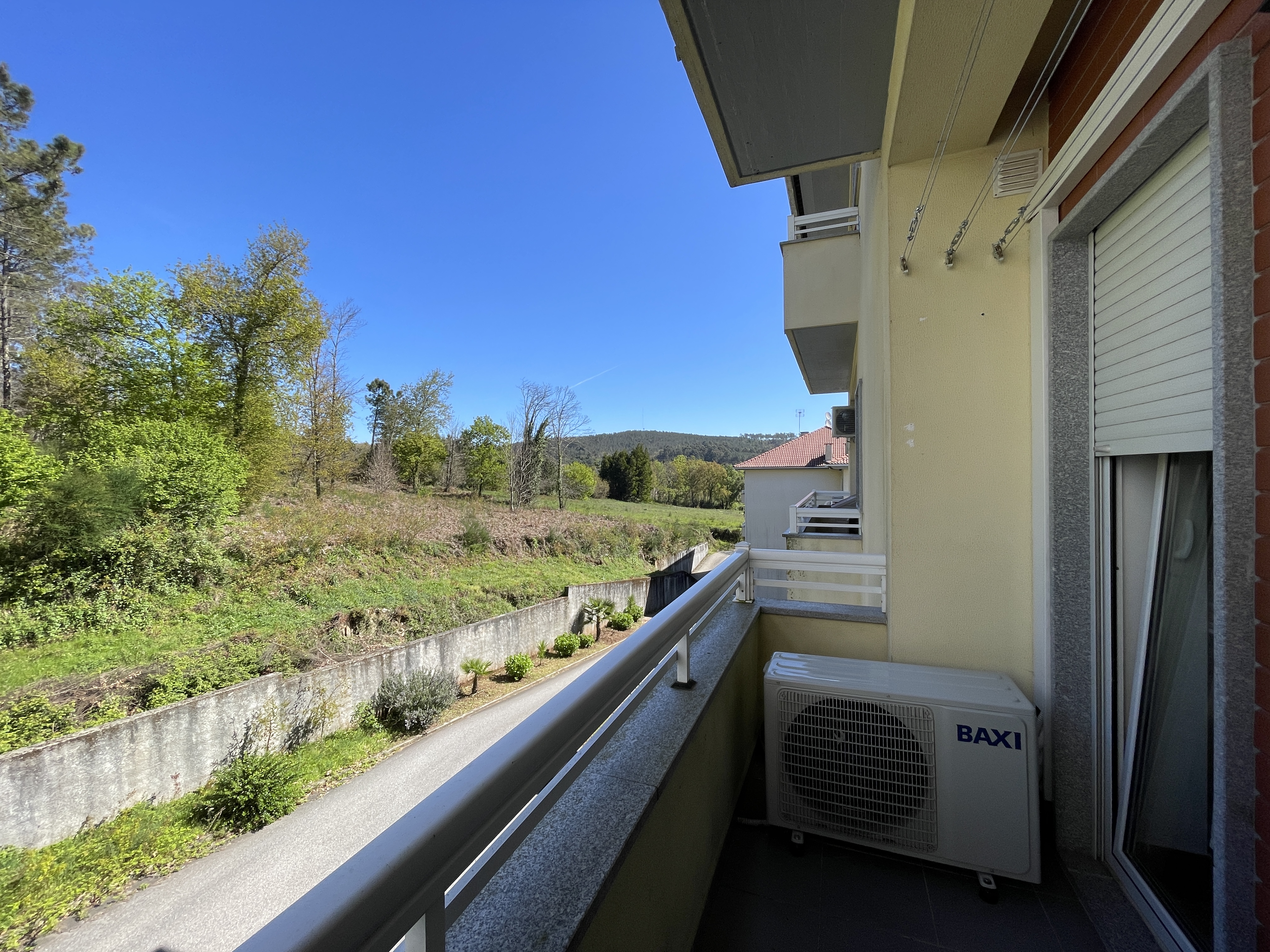 -Composto por hall de entrada, cozinha (está equipada com alguns eletrodomésticos) e sala em open space com acesso a varanda, despensa, três quartos, dois deles com roupeiros embutidos (proporcionando espaço de arrumação) com acesso a varanda partilhada e duas casas de banho. (remodelada). Situado no 1º piso.